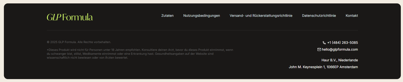 Die Marke hinter GLP Formula legt großen Wert auf Transparenz und Kundensicherheit. Alle Produkte werden unter kontrollierten Bedingungen hergestellt und ausschließlich über autorisierte Kanäle vertrieben. So wird sichergestellt, dass jede Bestellung über die offizielle Website authentisch und nachvollziehbar ist. Kunden erhalten Zugang zu Support, Versandinformationen und Garantie direkt über die Kontaktkanäle des Herstellers.