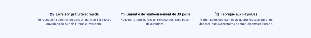 GLP Lab respecte les politiques de transparence et les exigences de sécurité recommandées par Google Ads : aucune promesse médicale, informations exactes sur le prix, la garantie et la livraison. Tous les chiffres affichés (49,95 €, -50 %, économie de 119,95 €) correspondent à l’offre réelle présentée sur le site officiel. Le produit est destiné aux adultes souhaitant soutenir leur bien-être global et ne remplace pas une alimentation équilibrée.
